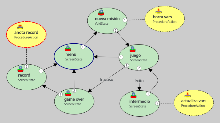 Es fácil crear y editar máquinas de estados en forma visual e interactiva. Se pueden aplicar máquinas de estados a todos los objetos activos del juego: personajes, escenas, elementos de interface de usuario o flujo global del juego.