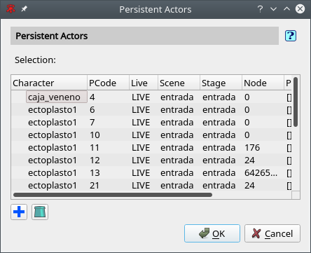 Editor del archivo de persistencia local. De utilidad durante el desarrollo. Puede usarse para guardar momentos interesantes del juego y volverlos a recuperar.