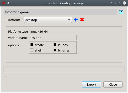 Nos aseguramos de tener marcadas las opciones create, launch y binaries y luego pulsamos el botón Export. Cuando se efectúa la exportación se crea una carpeta temporal (de nombre xi).