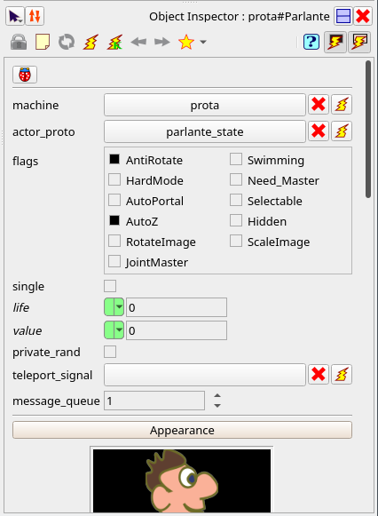 En esta ventana editamos los atributos de un objeto. Cada tipo de objeto tiene un conjunto de