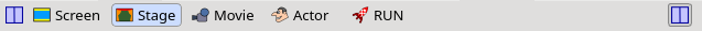 Su barra de control contiene los botones para ocultar o mostrar las áreas laterales y una hilera de botones que selecciona el tipo de ventana que se muestra en la sección superior.